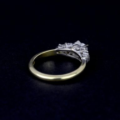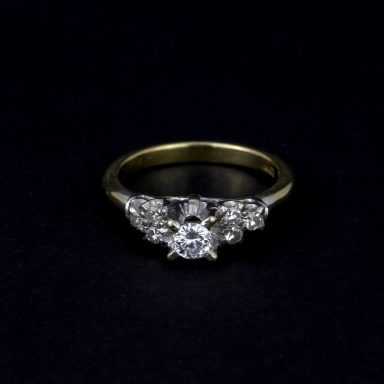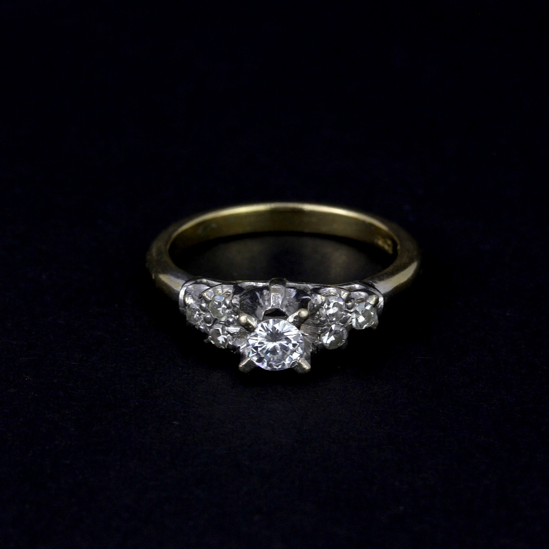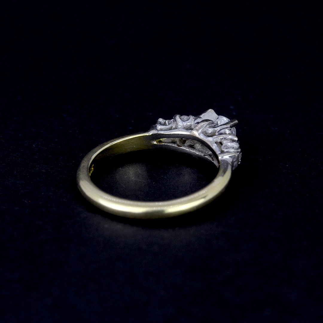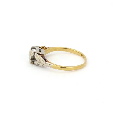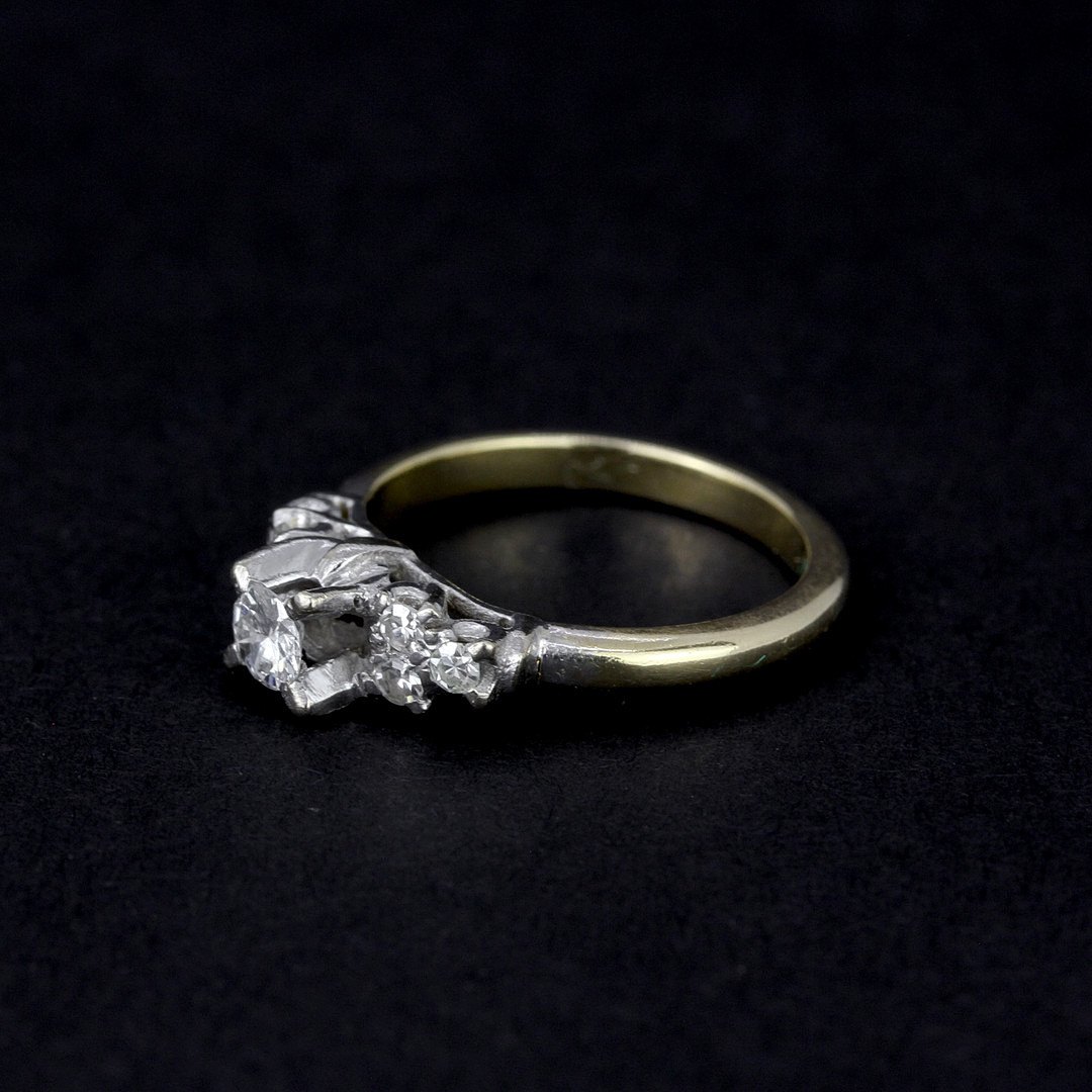 An 18ct yellow and white gold ring set with diamonds. Main diamond approx. 0.2ct. Uk ring size: J,5. Total weight: 4g.