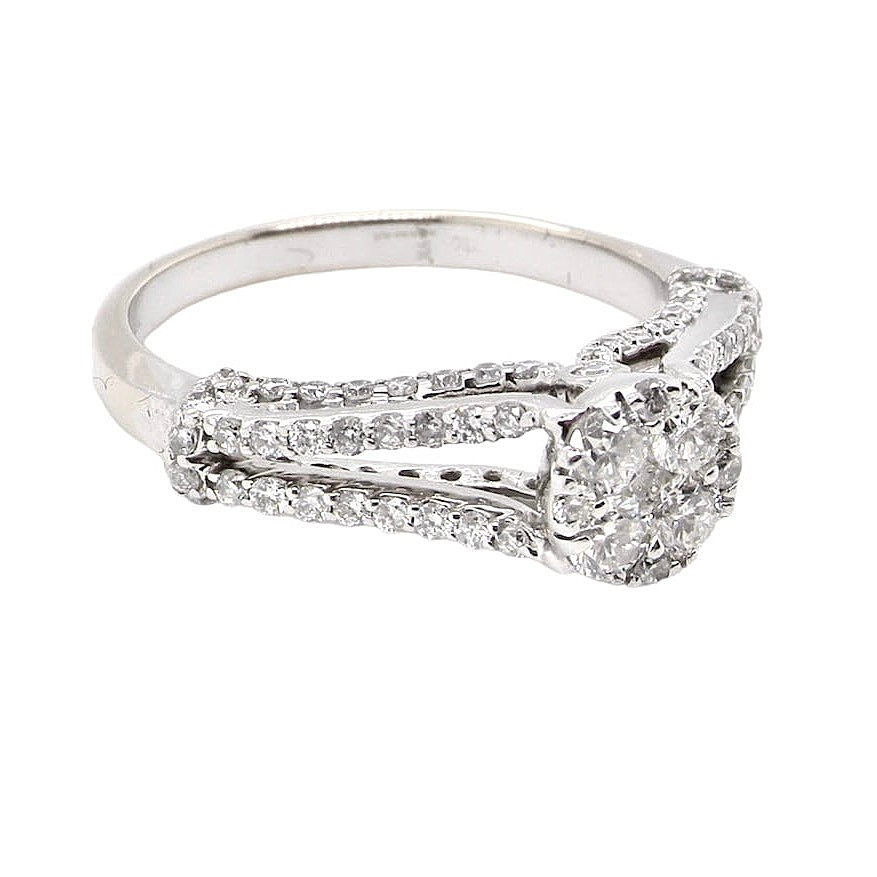18ct white gold ring set with diamonds approx 0.7ct. Size N, total weight 4g.