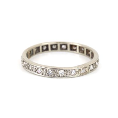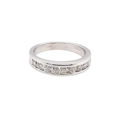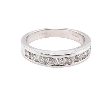 An 18ct white gold half eternity ring set with ten diamonds (1ct total). Diamonds colour F-H. Clarity VSi. Hallmarked London 2010. UK ring size: M.