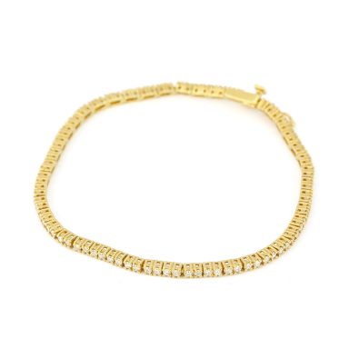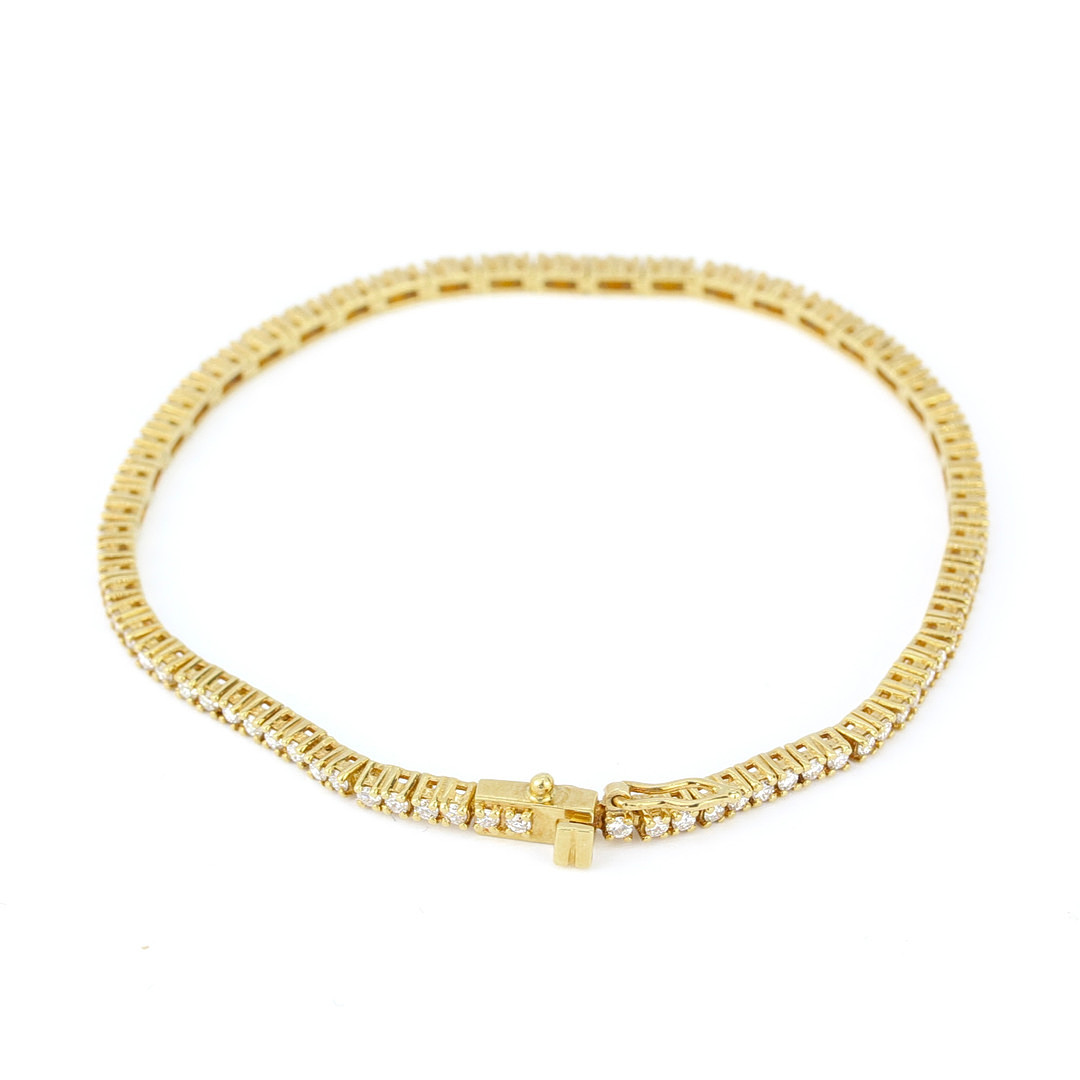 An 18ct yellow gold diamond tennis bracelet. Diamonds approx. 0.90ct Length: 18,5cm. Hallmark on the clasp.