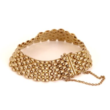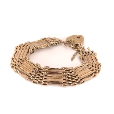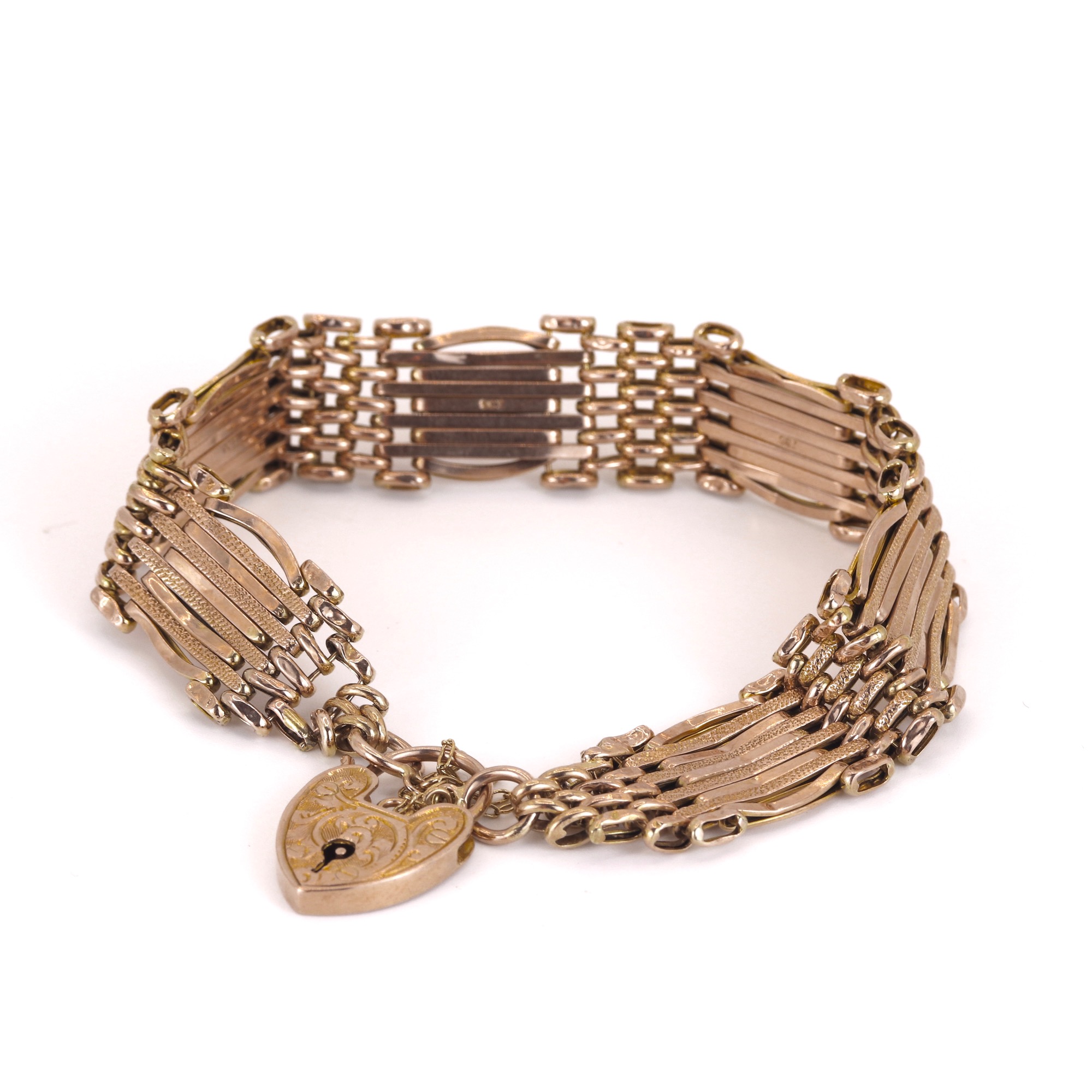A 9k yellow gold bracelet set with heart shaped locket pendant.