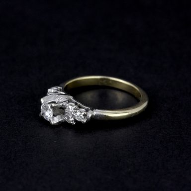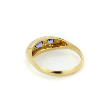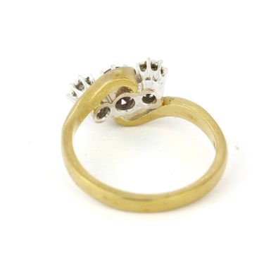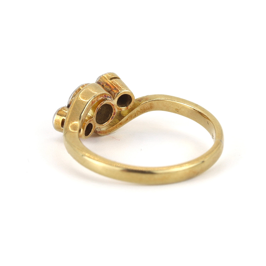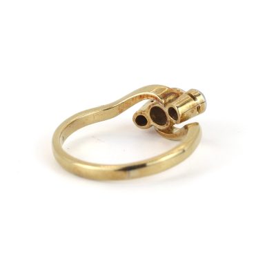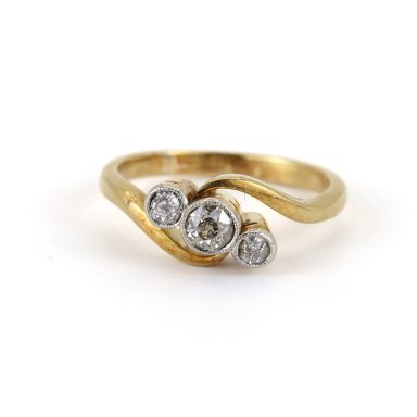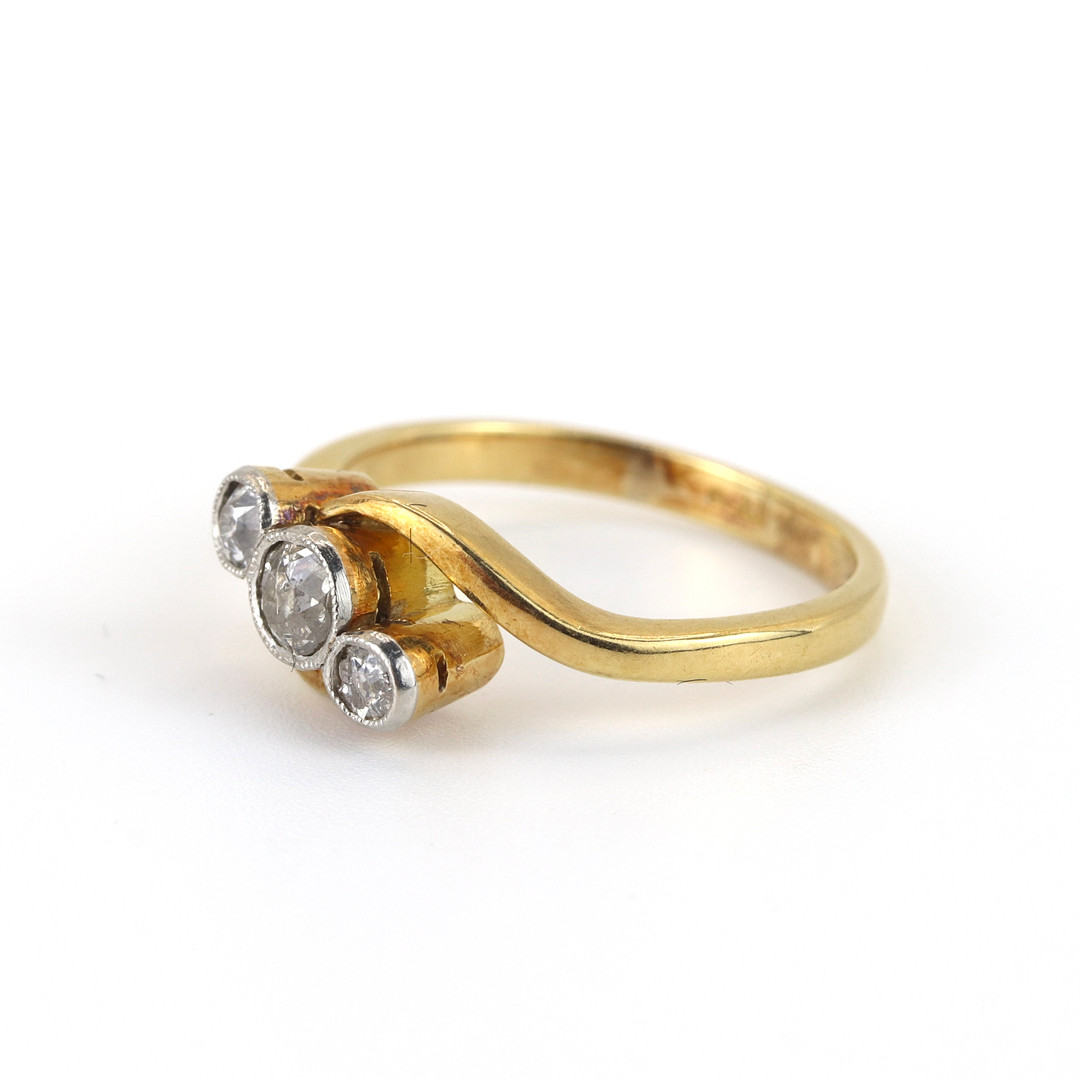 n 18K yellow gold crossover ring set with three diamonds. UK ring size: F.
