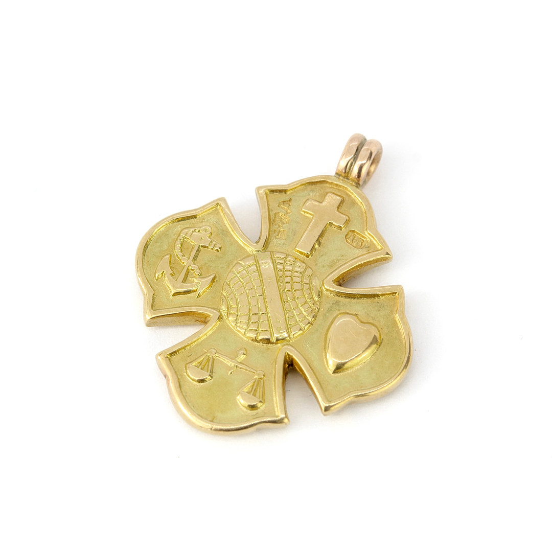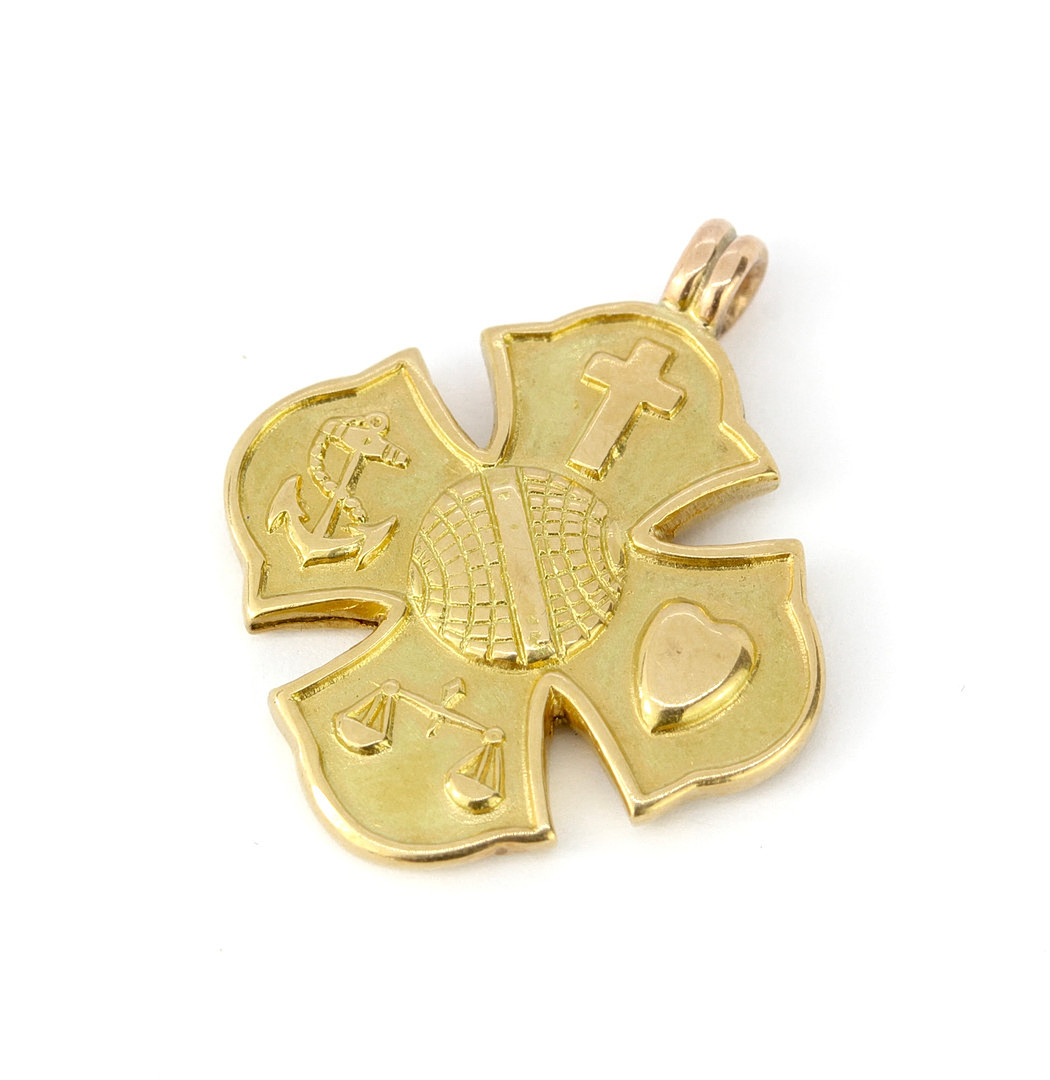 An antique 15ct yellow gold pendant. Size: 2cm x 2,5cm . Total weight: 5.6g.