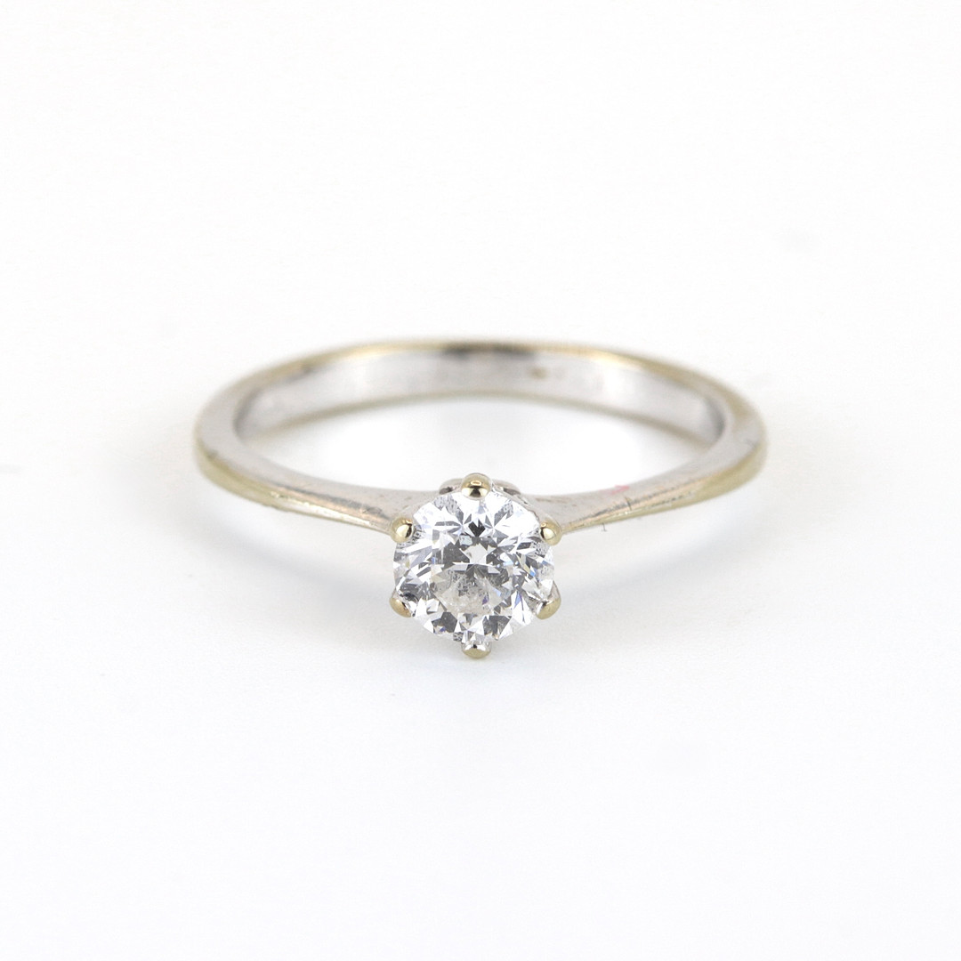 18K white gold solitaire ring set with diamond. Dia. approx. 0,25ct.