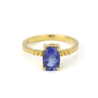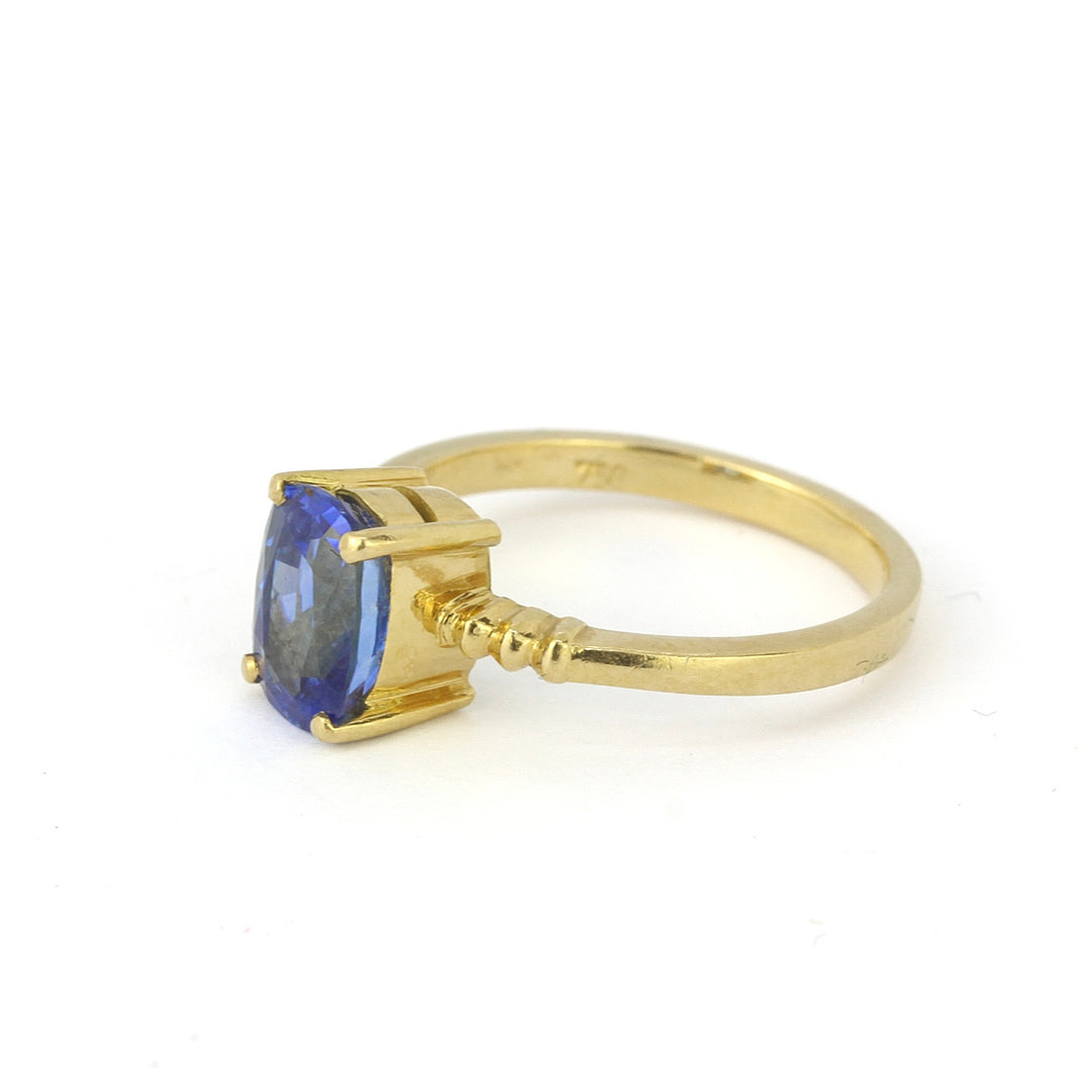 An 18ct yellow gold solitaire ring set with emerald cut sapphire.