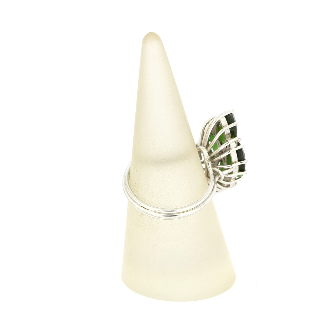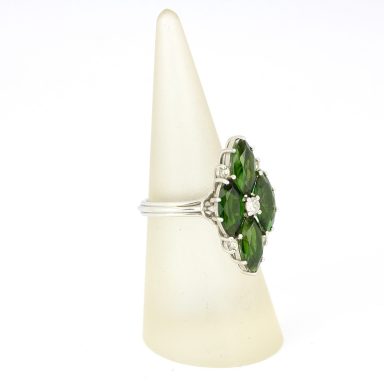 An 18ct white gold ring set with green tourmalines and diamonds. UK ring size: L,5.