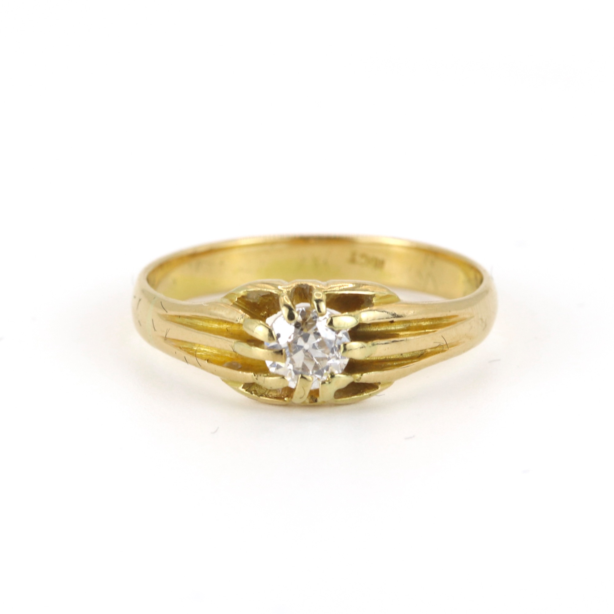 An 18K yellow gold ring set with old cut diamond ( approx. 0.20ct). UK ring size: Q,5.