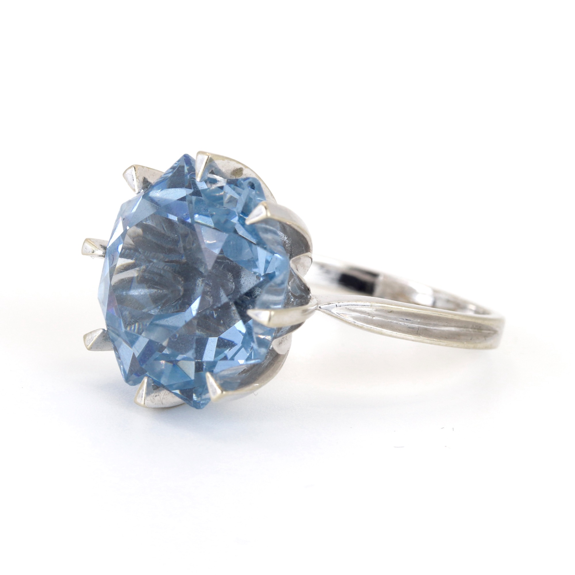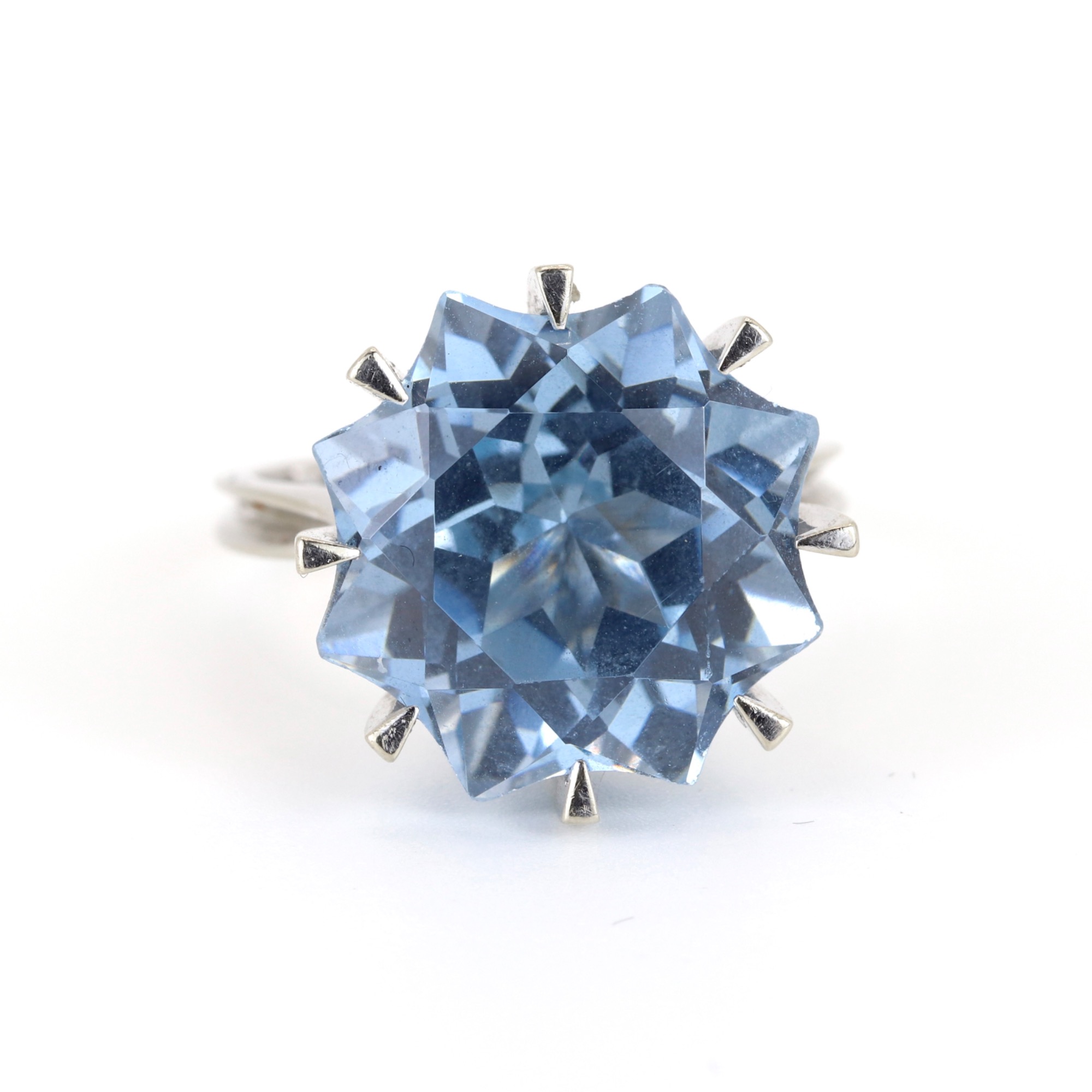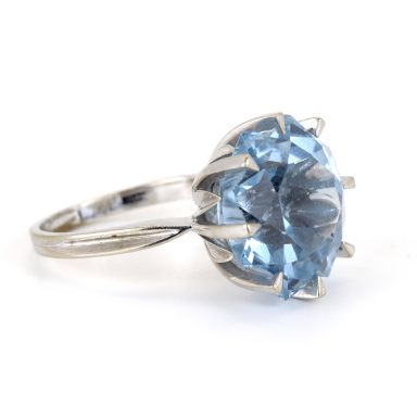 An 18K white gold ring set with large blue topaz (approx 25ct). UK ring size: P,5.