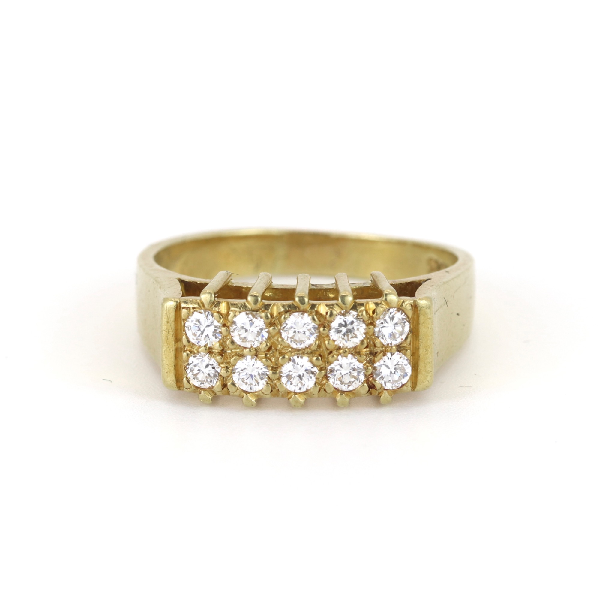 An 18K yellow gold ring set with diamonds. Dia. total 0,45ct.