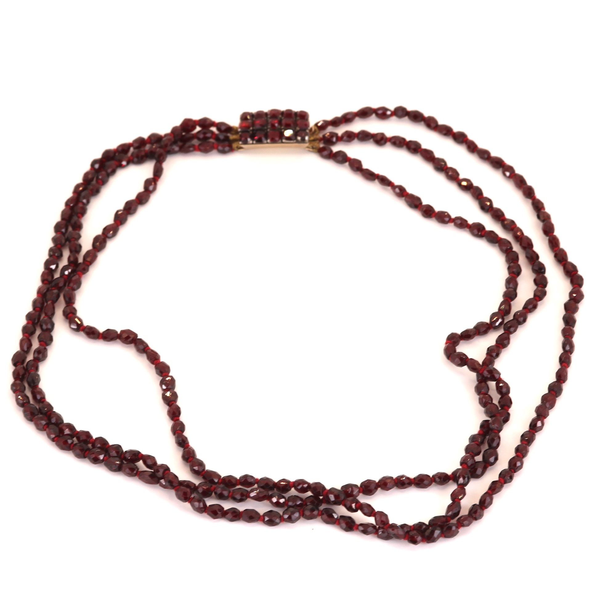 A Garnet necklace set with 9K yellow gold clasp. Length: 46cm.